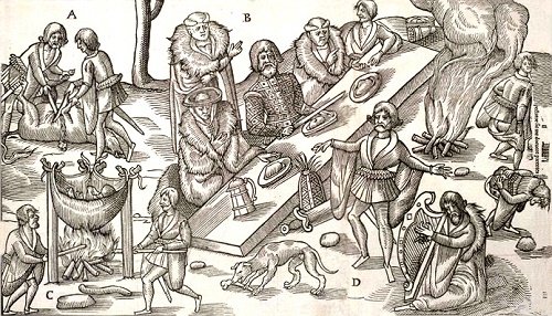 “Jack sayt nowt of what meats were served at dinner.  Onlie that Tyrone drank to the health of Lord Essex.  They sat ’neath the sky on fern forms and ate off fern tables, like unto the picture I saw.”
