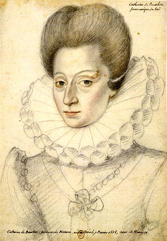 However, Henri’s sister Catherine de Bourbon (1559-1604) was probably the most powerful woman in France. So no surprise that her make-up and dress sense were subject to close scrutiny by foreign ambassadors, just as Elizabeth I’s were. Some things never change.